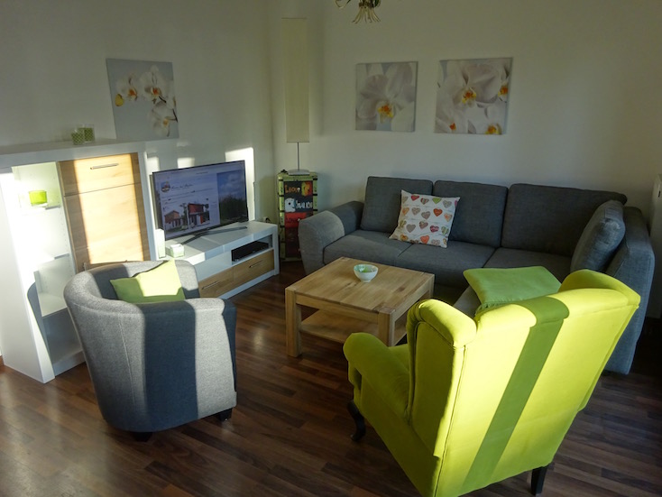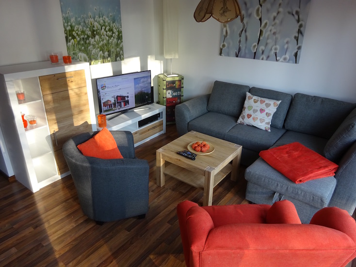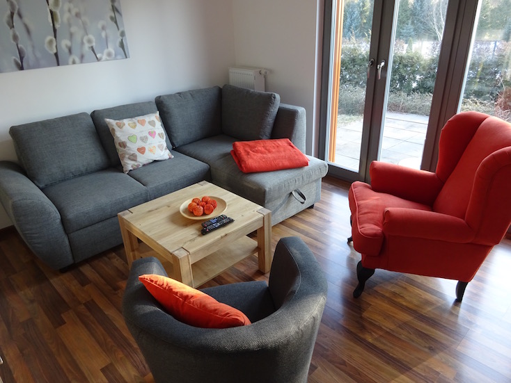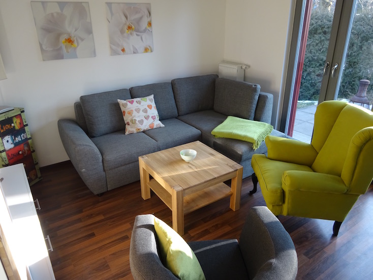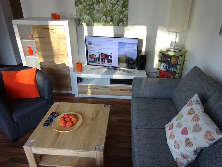 Mit zwei getrennten Schlafzimmern (eines im EG, eines im OG) bieten sie optimalen Platz für bis zu vier Personen. Im Erdgeschoss laden das großzügige Wohnzimmer zum Relaxen, Lesen, Fernsehen oder gemütlichem Beisammensein ein. Auf der Sonnenterrasse ist ausreichend Platz für den Grill und die Liegestühle - ohne neugierige Nachbarsblicke. Und wenn der große Hunger kommt: die Küchenzeile und die Essecke stehen bereit. Für die „kleinen Geschäfte" gibt es im EG ein WC. Bitte beachten Sie, dass auf vielfachen Wunsch unserer Gäste beide Häuser NICHT-RAUCHER Häuser sind. Wir bitten unsere Gäste, die den Tabak Genuss schätzen, ausserhalb der Häuser zu rauchen. Vielen Dank. |